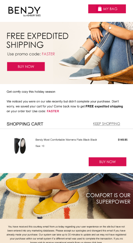Email drives user back to complete purchase.